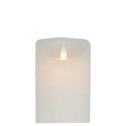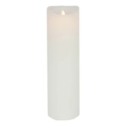 Echtwachskerze für den Innenraum in der Farbe weiß mit beweglicher Flamme und Timer – Größe H-20 x Ø 9 cm Diese LED Kerze wird mit je 2 X AA LR6 (Nicht in der Lieferung enthalten ) betrieben. Die Timerfunktion schaltet die LED für 6 Stunden AN und danach für 18 Stunden aus. LED-Kerzen sind eine ideale Alternative zu herkömmlichen Wachskerzen. Sie sind flammenlos und erzeugen dennoch ein gemütliches Licht. Zudem sind Pflegeleicht – Kein Rußen – keine Wachstropfen