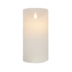 Echtwachskerze für den Innenraum in der Farbe weiß mit flackereffekt und Timer – Größe H:15 x Ø 7.5 cm Diese LED Kerze wird mit je 3 X AAA 1,5 V – LR03 (Nicht in der Lieferung enthalten ) betrieben. Die Timerfunktion schaltet die LED für 6 Stunden AN und danach für 18 Stunden aus. LED-Kerzen sind eine ideale Alternative zu herkömmlichen Wachskerzen. Sie sind flammenlos und erzeugen dennoch ein gemütliches Licht. Zudem sind Pflegeleicht – Kein Rußen – keine Wachstropfen