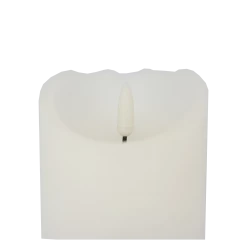 Echtwachskerze für den Innenraum in der Farbe weiß mit flackereffekt und Timer – Größe H:15 x Ø 7.5 cm Diese LED Kerze wird mit je 3 X AAA 1,5 V – LR03 (Nicht in der Lieferung enthalten ) betrieben. Die Timerfunktion schaltet die LED für 6 Stunden AN und danach für 18 Stunden aus. LED-Kerzen sind eine ideale Alternative zu herkömmlichen Wachskerzen. Sie sind flammenlos und erzeugen dennoch ein gemütliches Licht. Zudem sind Pflegeleicht – Kein Rußen – keine Wachstropfen