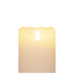 Echtwachskerze für den Innenraum in der Farbe weiß mit flackereffekt und Timer – Größe H:17.5 x Ø 7.5 cm Diese LED Kerze wird mit je 3 X AAA 1,5 V – LR03 (Nicht in der Lieferung enthalten ) betrieben. Die Timerfunktion schaltet die LED für 6 Stunden AN und danach für 18 Stunden aus. LED-Kerzen sind eine ideale Alternative zu herkömmlichen Wachskerzen. Sie sind flammenlos und erzeugen dennoch ein gemütliches Licht. Zudem sind Pflegeleicht – Kein Rußen – keine Wachstropfen