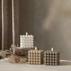 LED Kerze Bubble – Würfelkerze – Echtwachs – realistische 3D Flamme – H: 12,5cm – Timer – weiß
