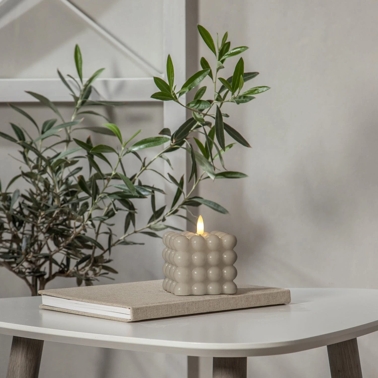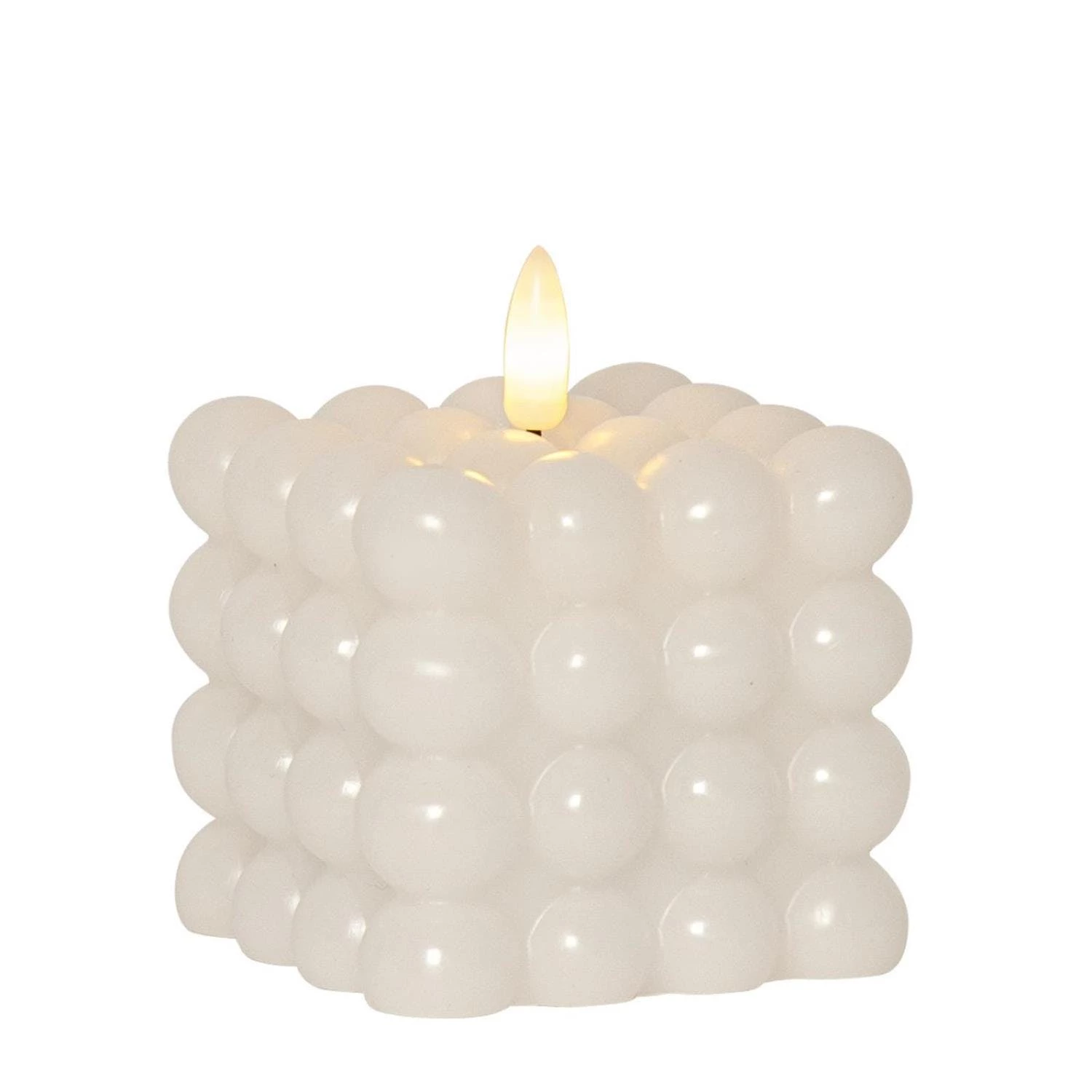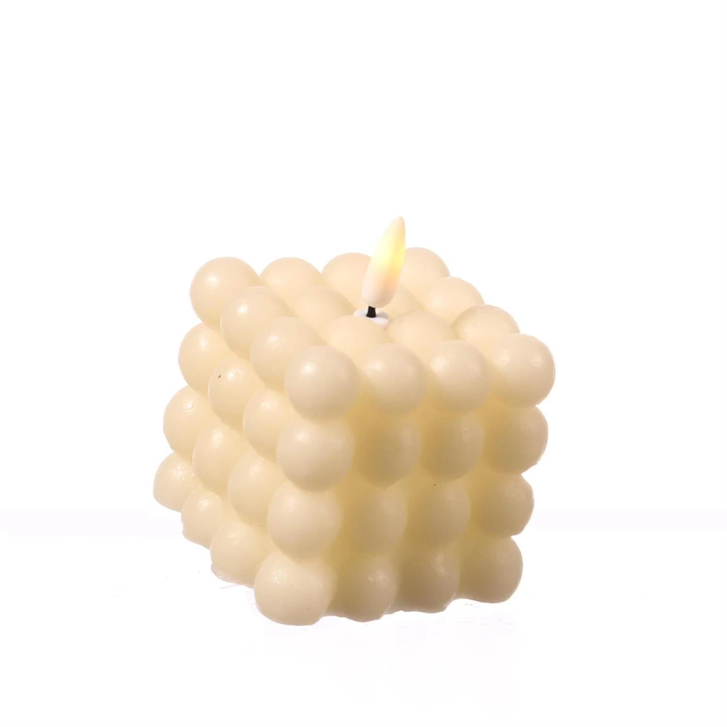 LED Kerze Bubble – Würfelkerze – Echtwachs – realistische 3D Flamme – H: 9,5cm – Timer – creme