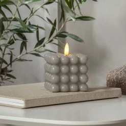 LED Kerze Bubble – Würfelkerze – Echtwachs – realistische 3D Flamme – H: 9,5cm – Timer – grau