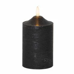 Diese Stumpenkerze leuchtet in einem realistischen gelblich-orangen Farbton. Die 3D Flamme zeigt ein leichtes Flackern, das eine romantische und gemütliche Atmosphäre erzeugt.
