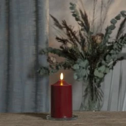 LED Stumpenkerze Flamme – Echtwachs – warmweiĂźe 3D Flamme – H: 15cm – Batteriebetrieb – Timer – rot