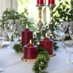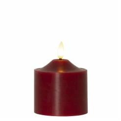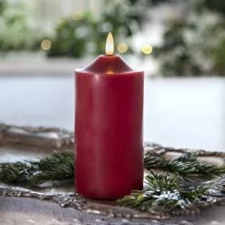LED Stumpenkerze Flamme – Echtwachs – warmweiße 3D Flamme – H: 17cm – Batteriebetrieb – Timer – rot