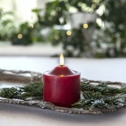 LED Stumpenkerze Flamme – Echtwachs – warmweiße 3D Flamme – H: 9,5cm – Batteriebetrieb – Timer – rot