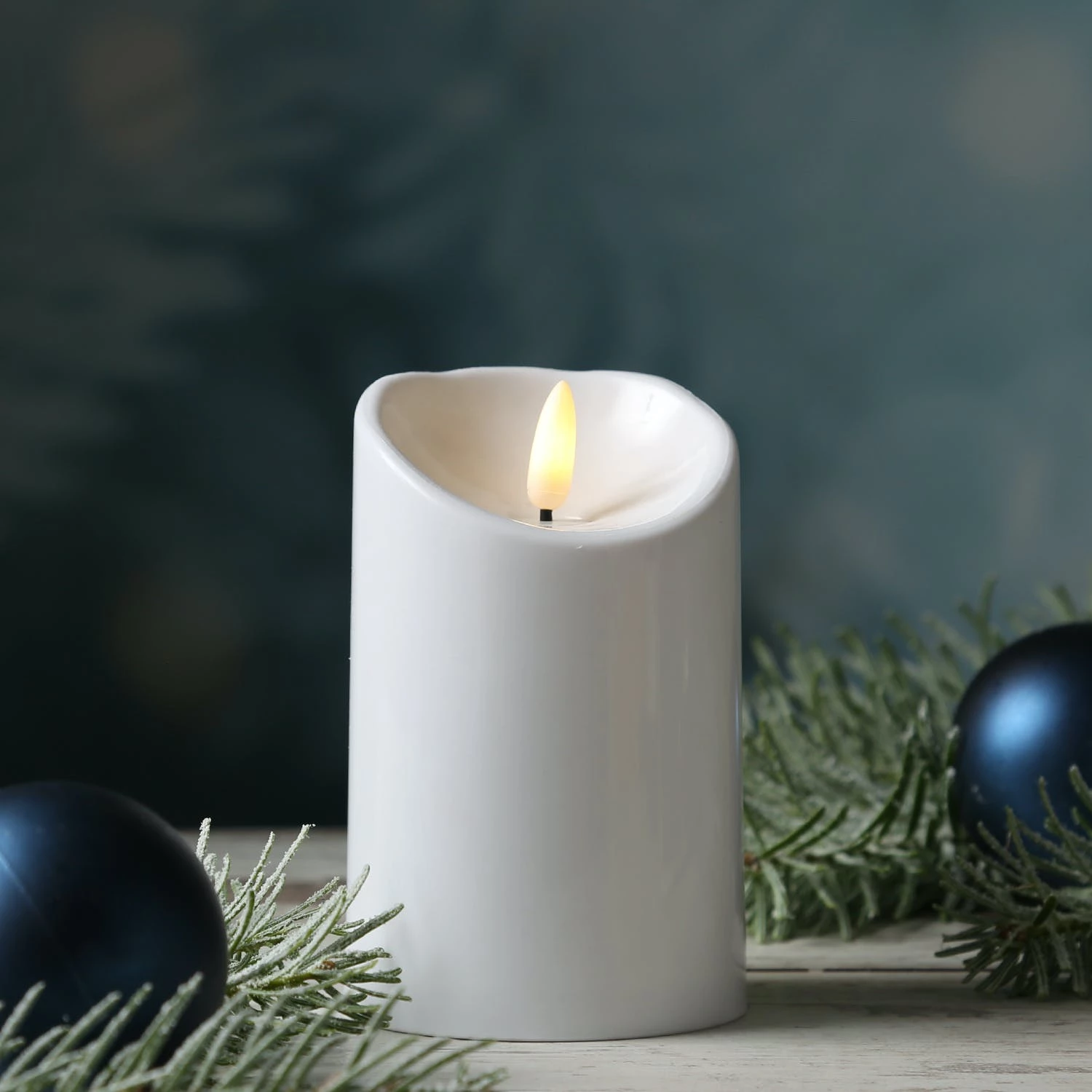 LED Kerze 3D Flamme – Kunststoff – flackernde Flamme – H: 12,5cm – D: 7,5cm – Timer – für Außen – weiß