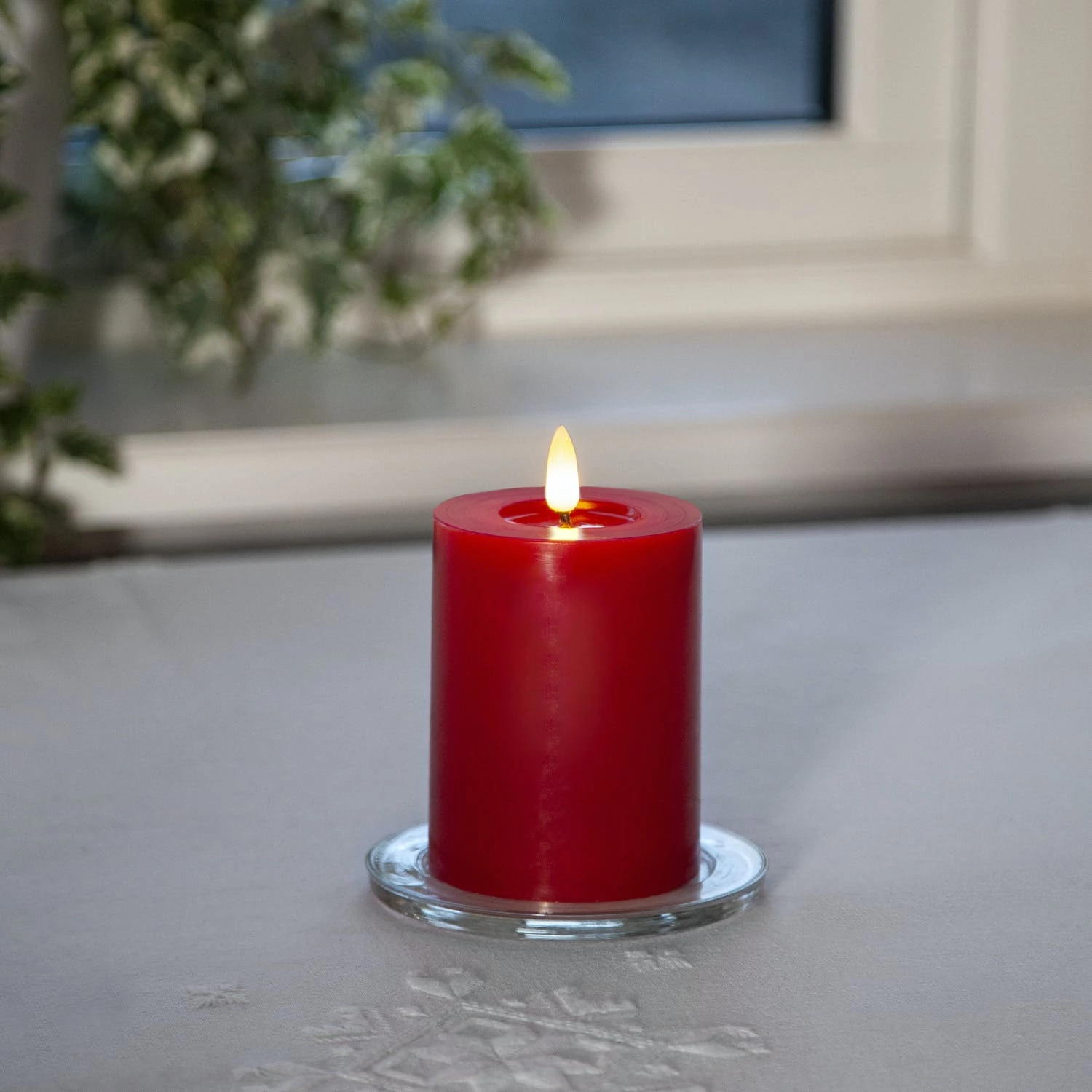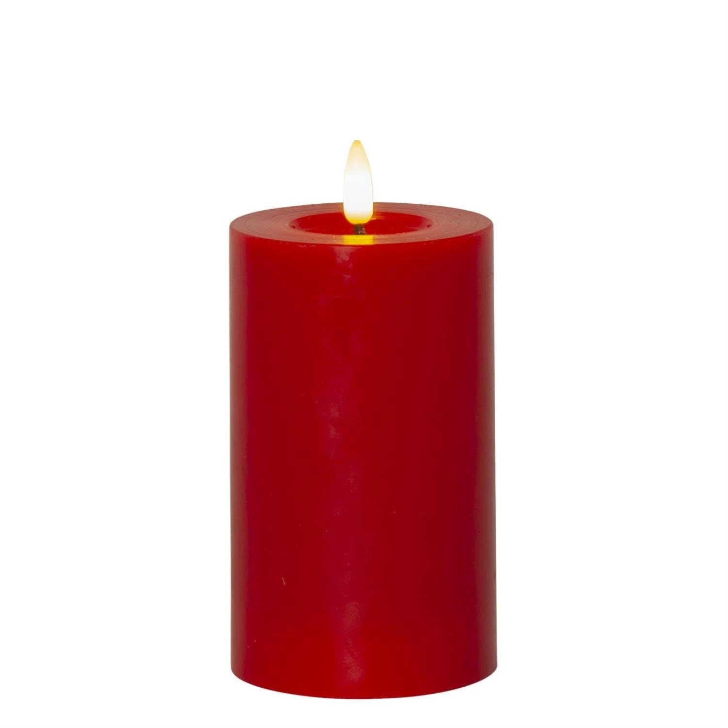 LED Stumpenkerze LINA – Echtwachs – realistische 3D Flamme – H: 12,5cm – Batterie – Timer – rot