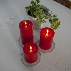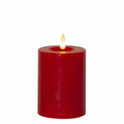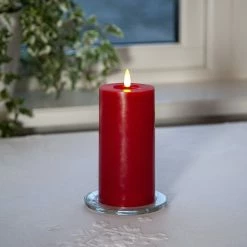 LED Stumpenkerze LINA – Echtwachs – realistische 3D Flamme – H: 17,5cm – Batterie – Timer – rot