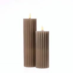 LED Kerze LIV – gerillt – Echtwachs – warmweiĂźe 3D Flamme – H: 22,5cm – D: 5,5cm – Timer – taupe