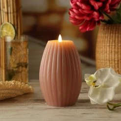 LED Kerze LIV – gerillt – Echtwachs – warmweiße 3D Flamme – H: 17cm – D: 10cm – Timer – altrosa