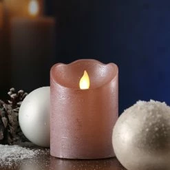 LED Kerze M-TWINKLE – Echtwachs – mechanisch bewegte Flamme – H: 10cm – D: 7,5cm – Timer – rosa