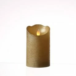 Diese goldarbene LED Stumpenkerze aus Echtwachs mit einer Höhe von 12,5cm ist perfekt dafĂŒr geeignet, Deine ganze Wohnung mit flackerndem Licht zu dekorieren. Die warmweiĂe LED flackert leicht und simuliert eine echte Flamme. Die bewegliche Flamme verbreitet dazu ein harmonisches warmweiĂes Licht in Deinen WohnrĂ€umen. Der Durchmesser von 7,5cm ist optimal fĂŒr diverse Kerzenhalter.