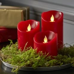 LED Stumpenkerze TWINKLE – bewegte, warmweiĂźe LED Flamme – H: 15cm, D: 7,5cm – Timer – rot