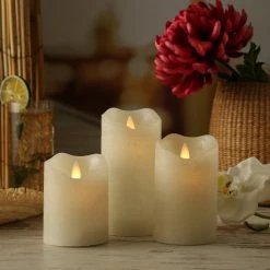 Das Set umfasst 3 verschiedene Größen in den Höhen 10cm, 12,5cm und 15cm. Die Kerzen sind perfekt dafür geeignet, Deine ganze Wohnung mit angenehmen Licht zu dekorieren. Die warmweiße LED in der Kerze flackert leicht und simuliert eine echte Flamme. Die bewegliche Flamme verbreitet dazu ein harmonisches warmweißes Licht in Deinen Wohnräumen. Der Durchmesser von 7,5cm ist optimal für diverse Kerzenhalter.