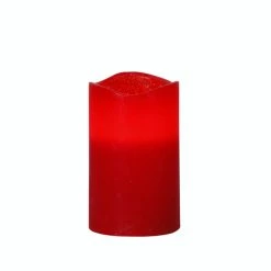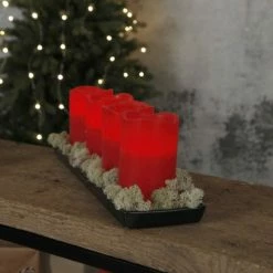LED Kerzenset rot – Echtwachs – flackernde LED – Timer – H: 12,5cm, D: 7,5cm – 4er Set