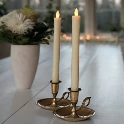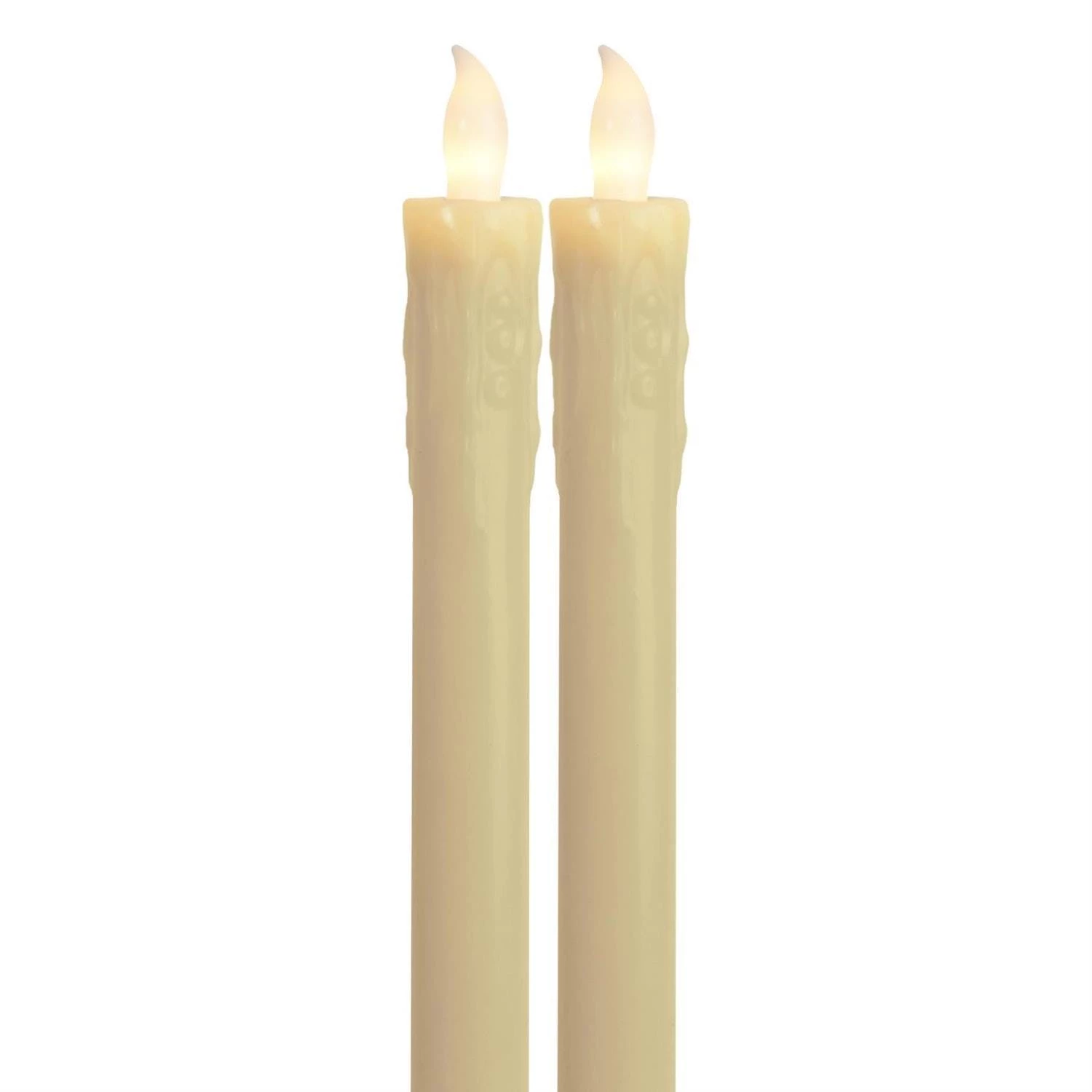 LED Stabkerze Presse – Echtwachs – flackernde warmweiße LED – H: 25cm – creme – 2er Set