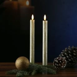 LED Stabkerzen Flamme – Echtwachs – flackernde warmweiĂe LED – H: 25cm – Timer – gold – 2er Set