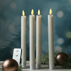 Diese 4 LED Stabkerzen leuchten in einem realistischen warmweißen Farbton. Die 3D Flamme zeigt ein leichtes Flackern, das eine romantische und gemütliche Atmosphäre erzeugt.