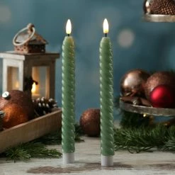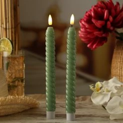 LED Stabkerzen TWIST – Echtwachs – flackernde 3D Flamme – H: 25cm – Timer – grün – 2er Set