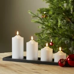Diese Stumpenkerze leuchtet in einem realistischen gelblich-orangen Farbton. Die 3D Flamme zeigt ein leichtes Flackern, das eine romantische und gemütliche Atmosphäre erzeugt.